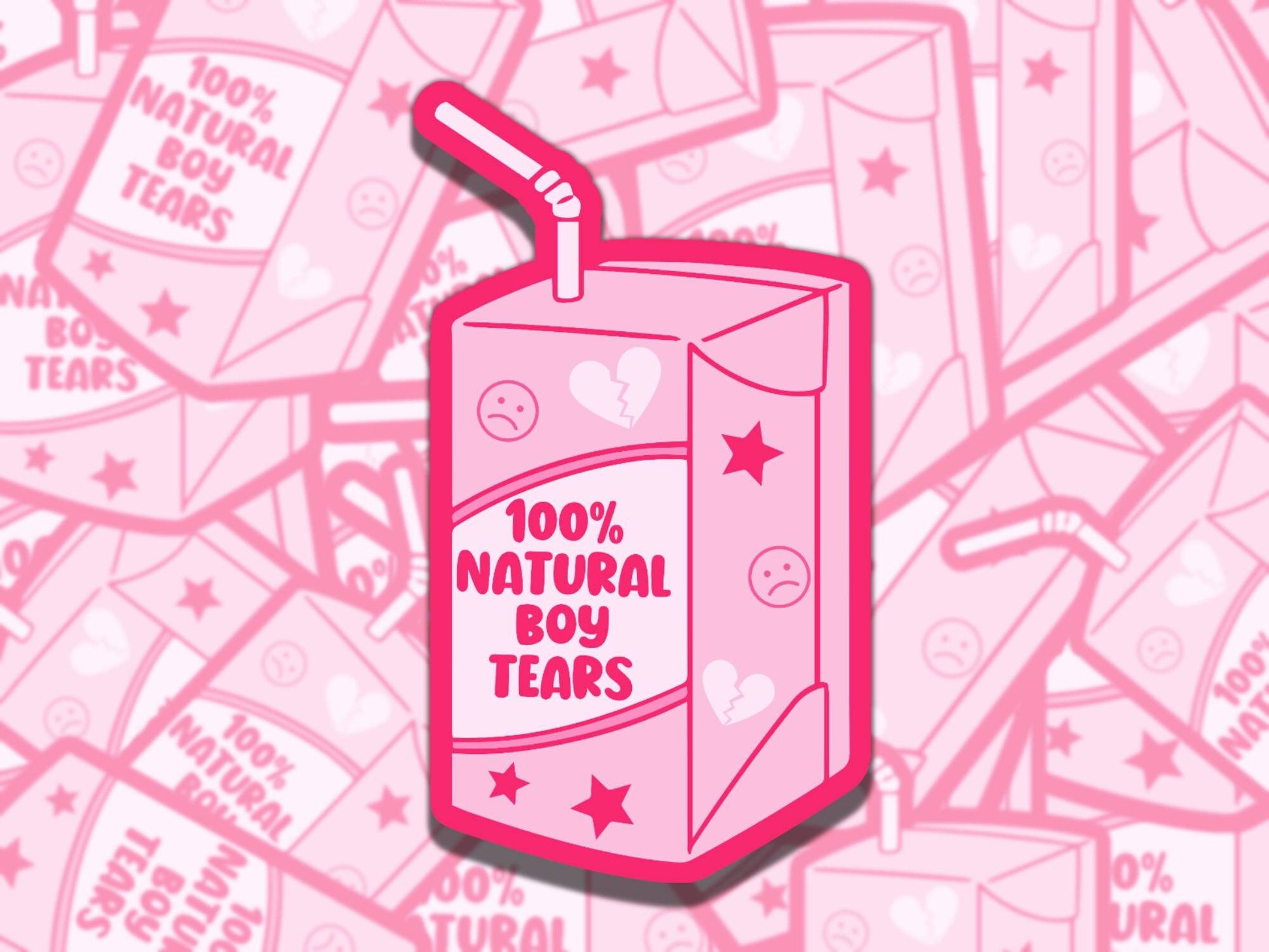 100% Boy Tears Cute Pink Girly Drink Waterproof Vinyl Sticker, Gift for Girl Friend, Funny Sticker for Kindle Laptop Water Bottle Journal
