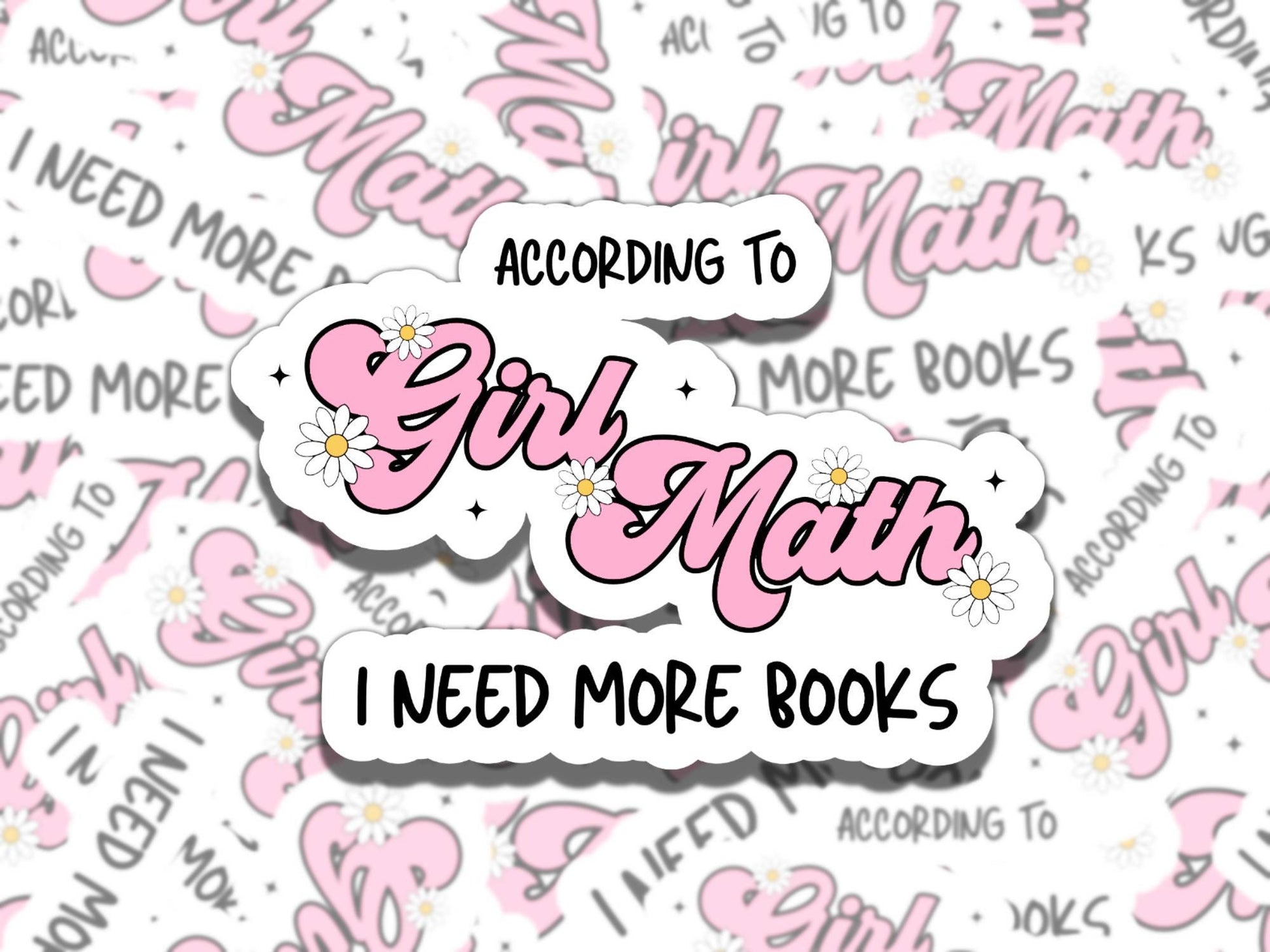 According to Girl Math I Need More Books Waterproof Vinyl Sticker, Gift for Girl Friend, Funny Sticker for Kindle Laptop Water Bottle Journa
