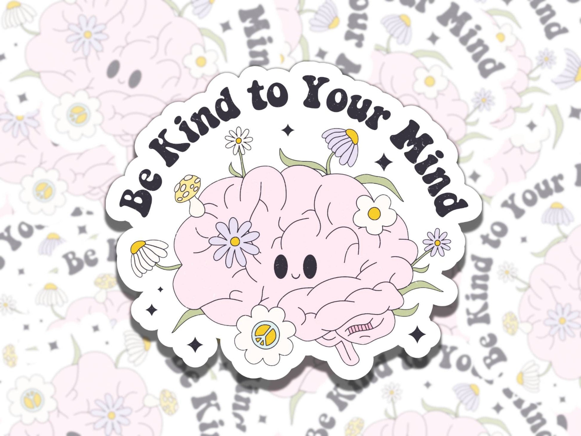 Be Kind to Your Mind Cute Pink Brain Mental Health Affirmation Sticker, Gift for Friend, Waterproof Sticker for Kindle Laptop Water Bottle