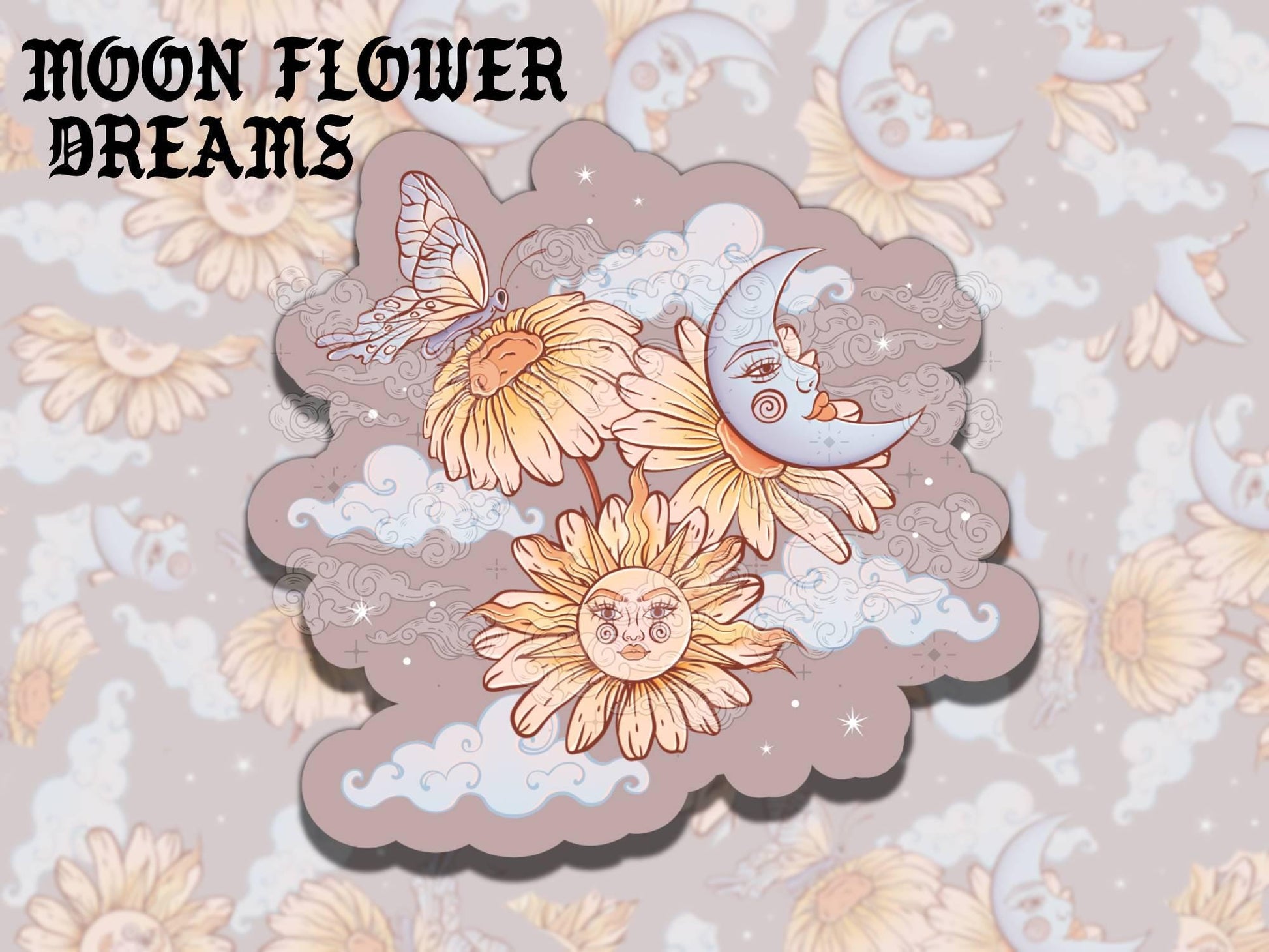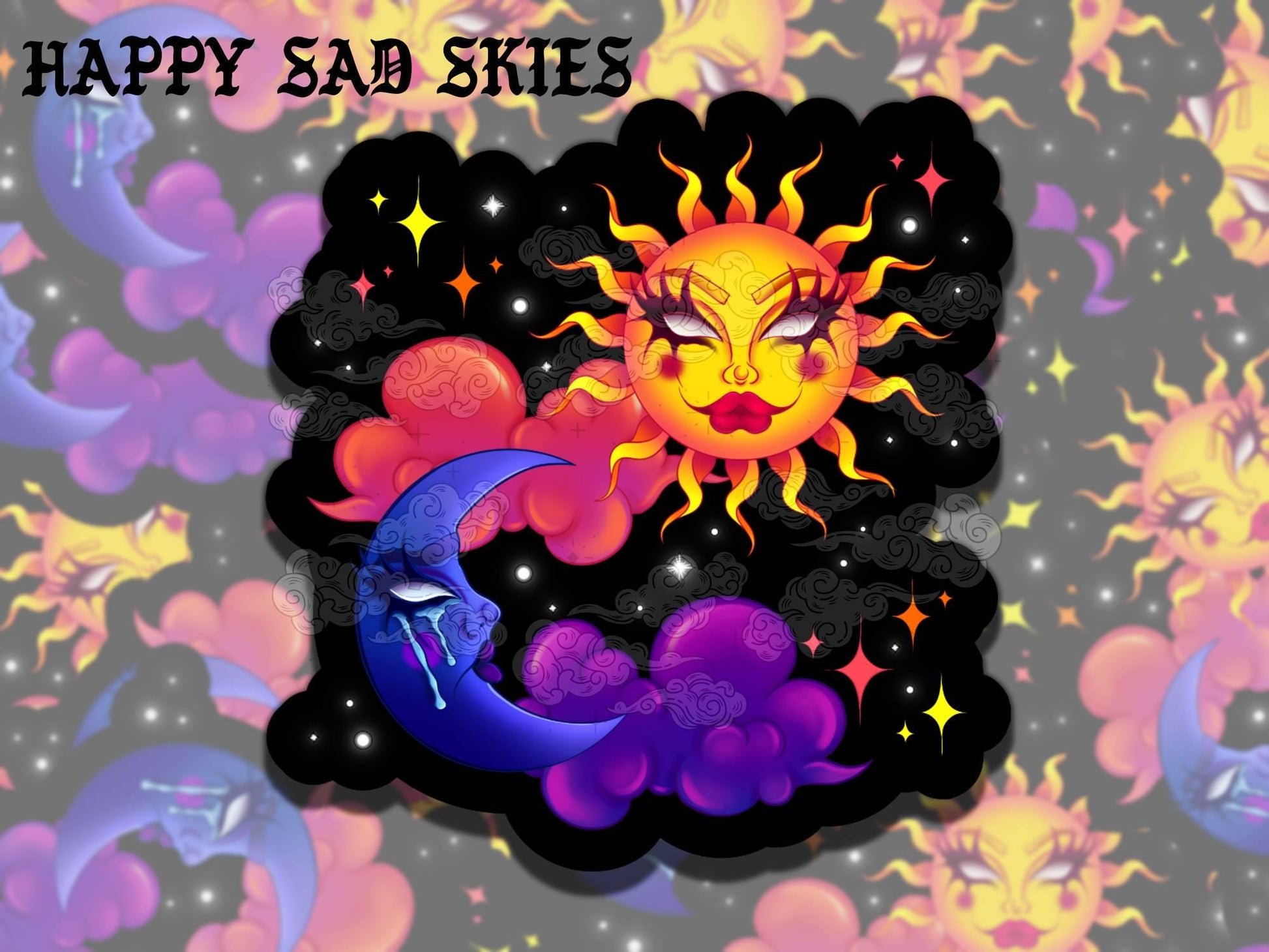 Celestial Twin Skies Gothic Waterproof Vinyl Sticker, Girly Gift for Friend, Funny Sticker for Kindle Laptop Water Bottle Journal