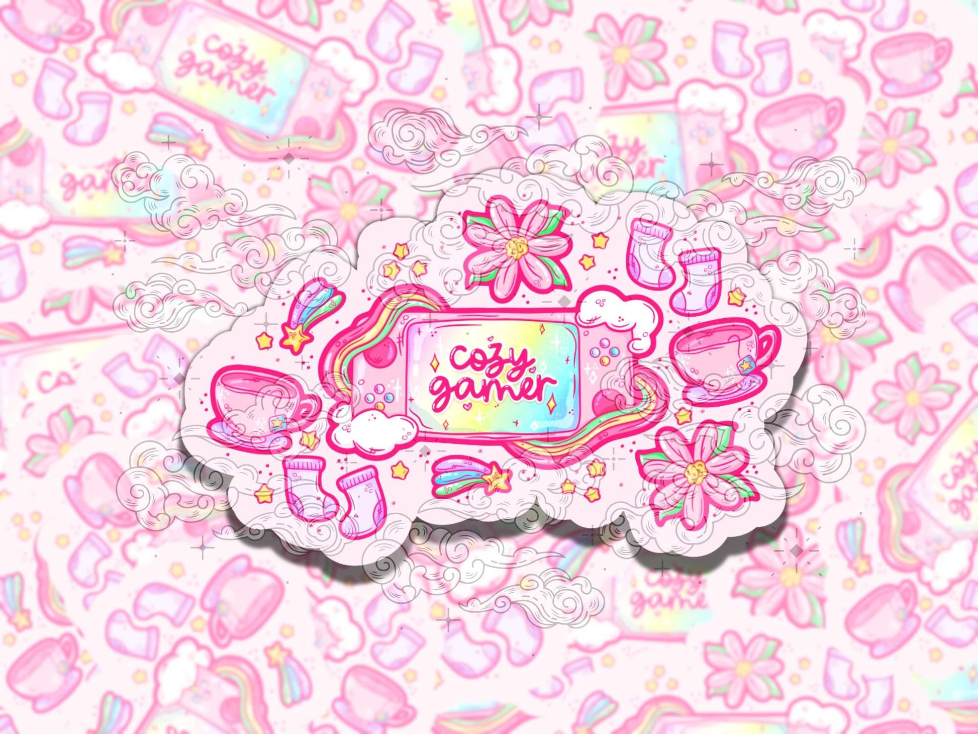 Cozy Gamer Cute Pink Waterproof Vinyl Sticker, Gift for Girl Friend, Funny Sticker for Kindle Laptop Water Bottle Journal