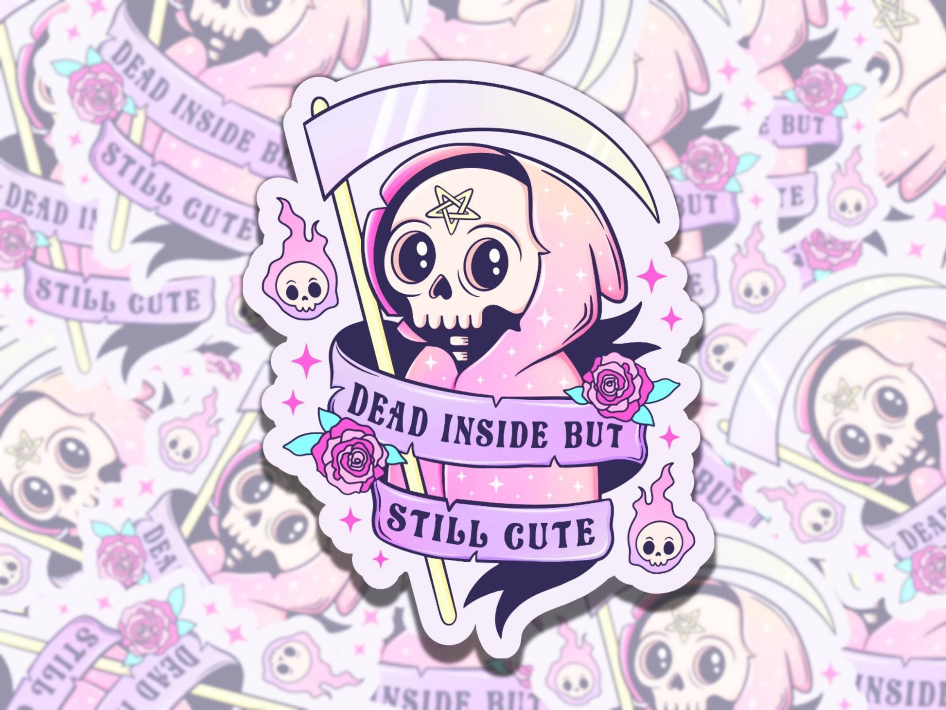 Dead Inside but Still Purple Skeleton Spooky Waterproof Vinyl Sticker, Gift for Friend, Funny Sticker for Kindle Laptop Water Bottle Journal