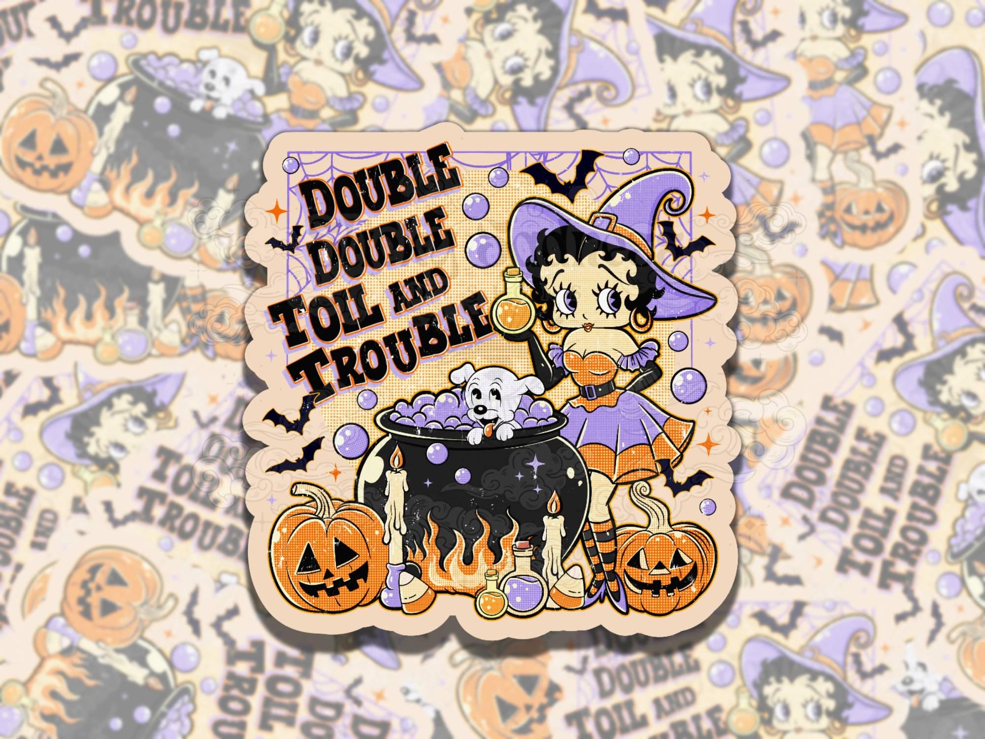 Double Double Pinup Girl Spooky Waterproof Vinyl Sticker, Gift for Friend, Funny Sticker for Kindle Laptop Water Bottle Journal