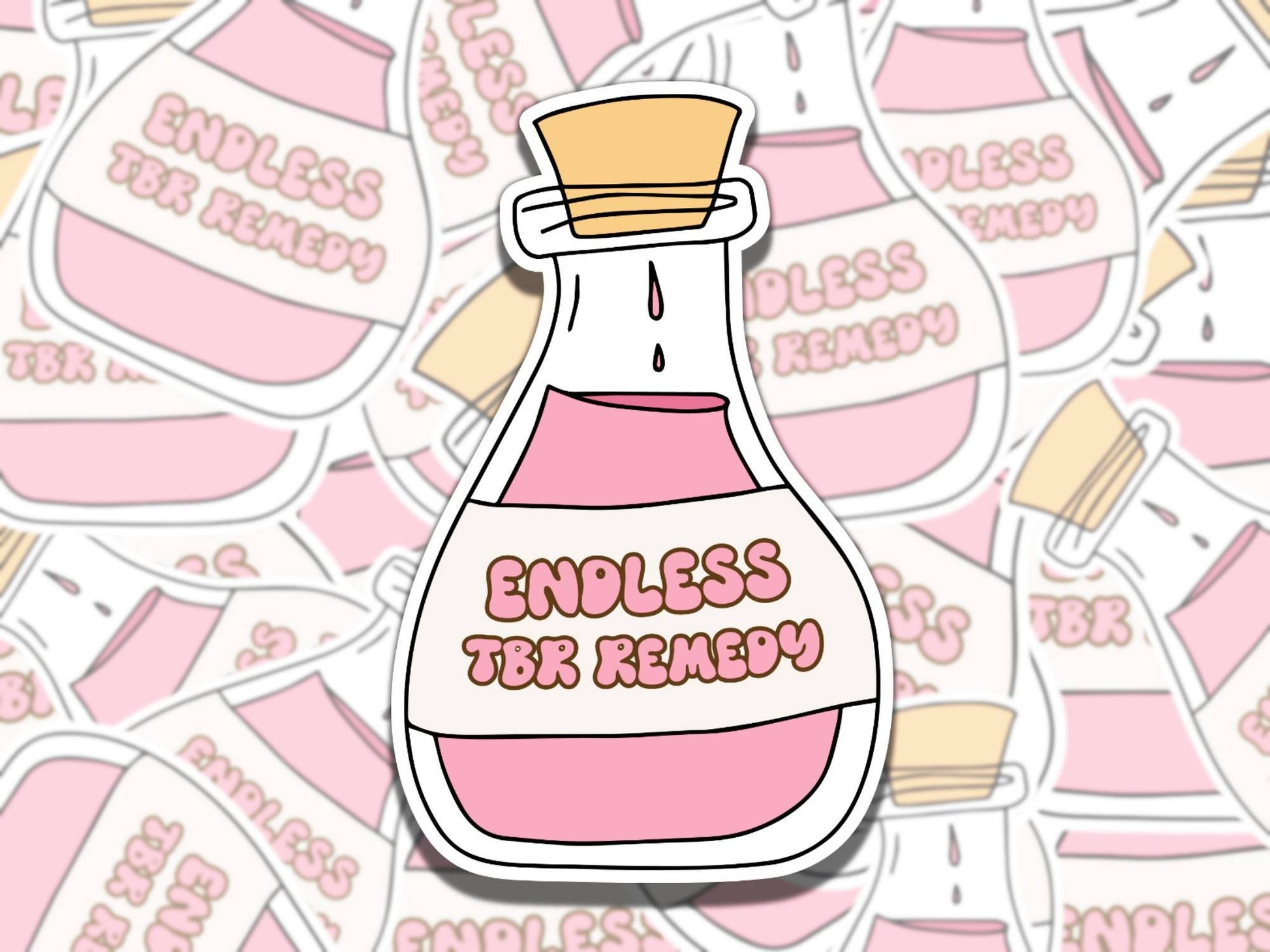 Endless TBR Remedy Sticker, Pink Potion Reading Vinyl Sticker, BookTok Waterproof eReader, Kindle, Cute Funny Gift for Bookworm, Bookish Gif