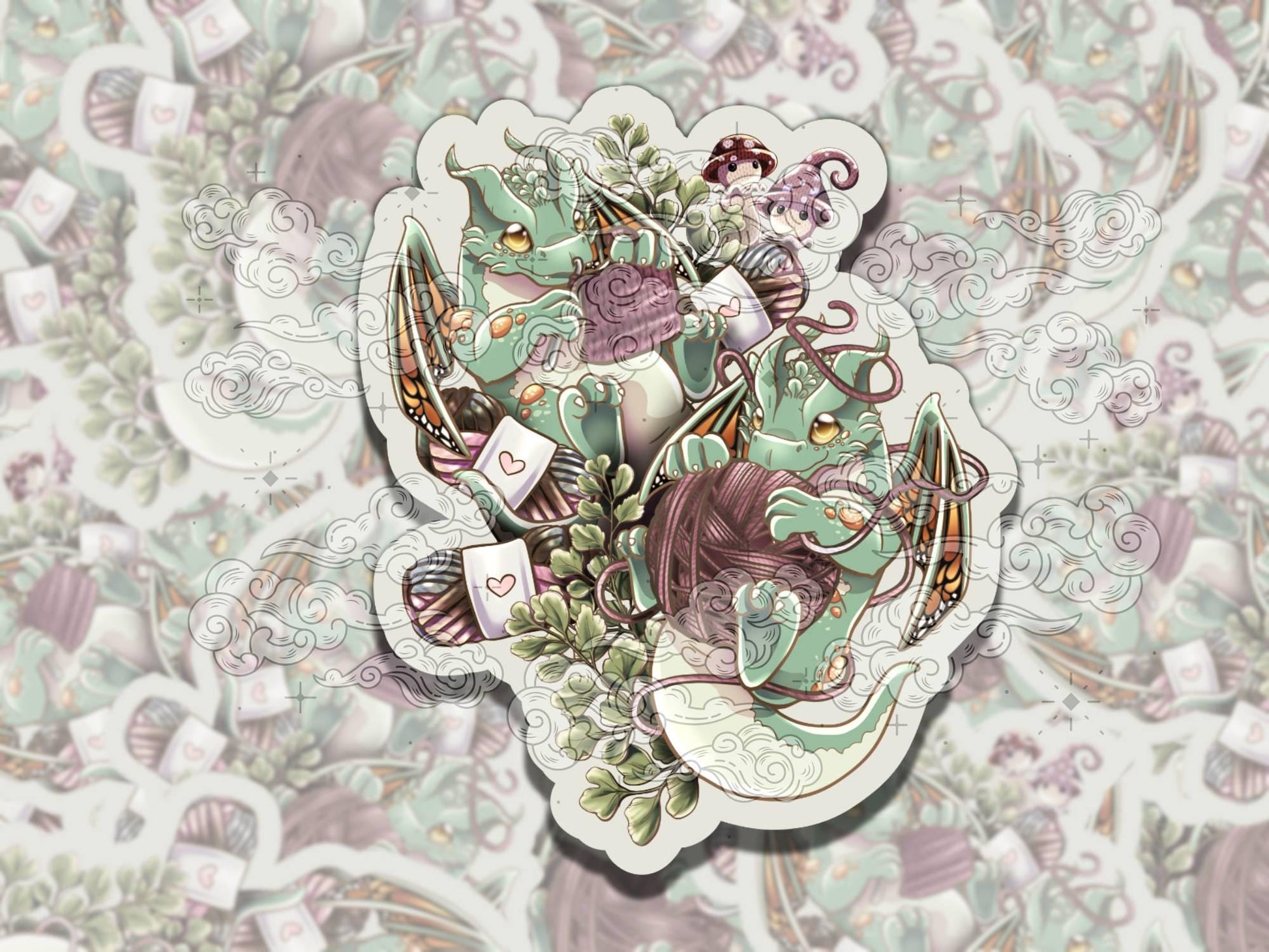 Fenrys Crocheting Dragon Cute Waterproof Vinyl Sticker, Gift for Friend, Funny Sticker for Kindle Laptop Water Bottle Journal