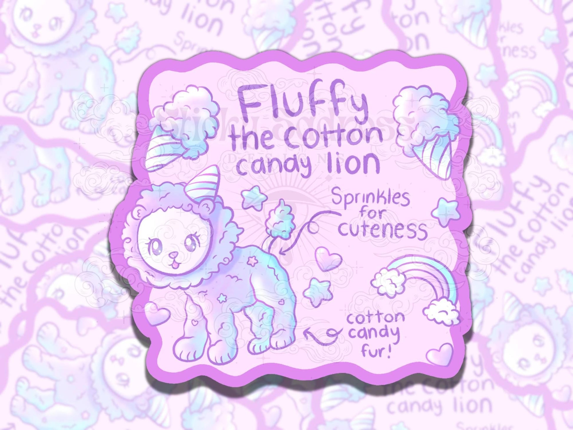 Fluffy Cotton Candy Lion Cute Girly Waterproof Vinyl Sticker, Gift for Girl Friend, Funny Sticker for Kindle Laptop Water Bottle Journal