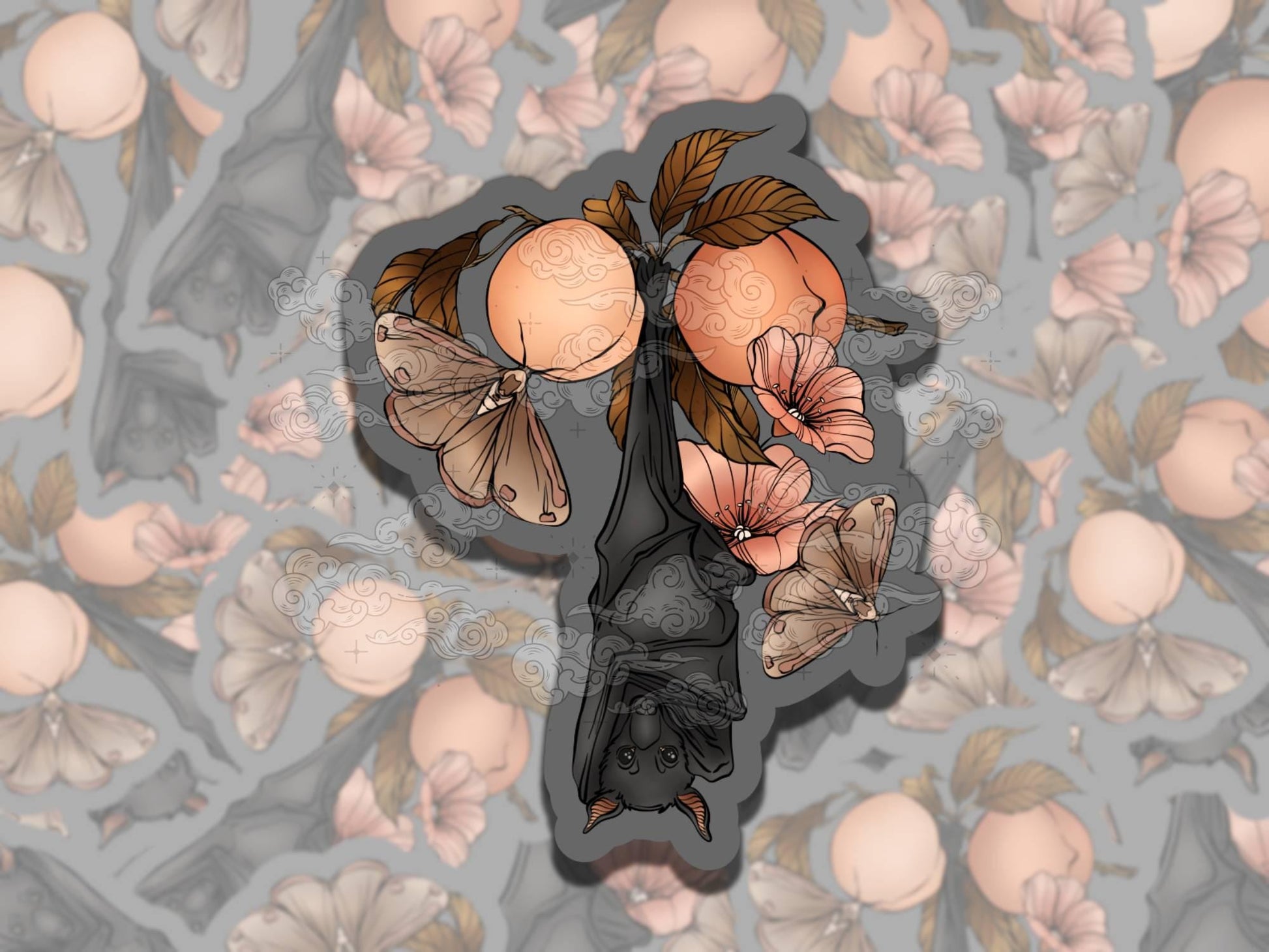 Fruit Bats Natural Whimsigoth Waterproof Vinyl Sticker, Girly Gift for Friend, Funny Sticker for Kindle Laptop Water Bottle Journal