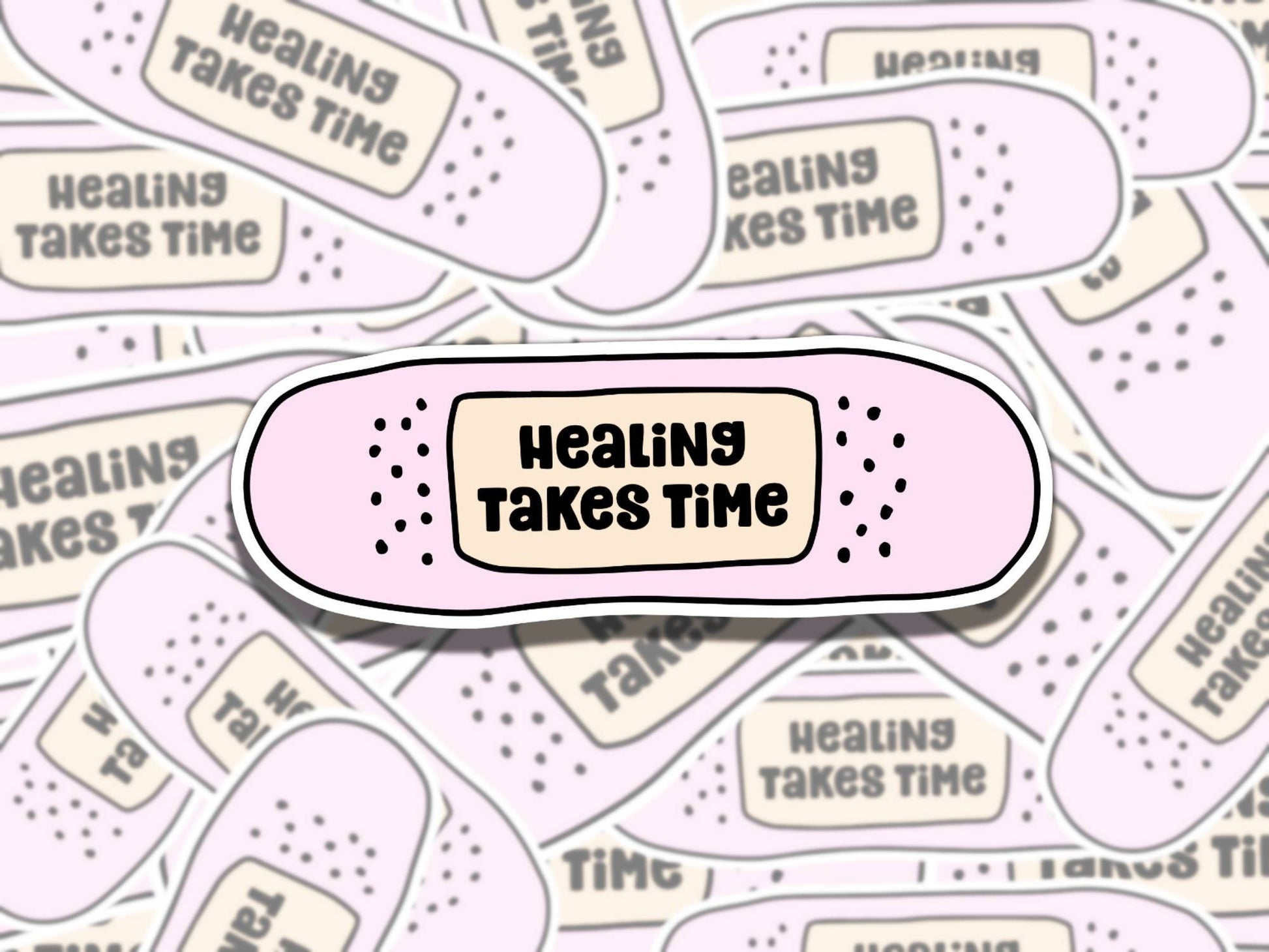Healing Takes Time Cute Pink Bandage Mental Health Affirmation Sticker, Gift for Friend, Fun Sticker for Kindle Laptop Water Bottle