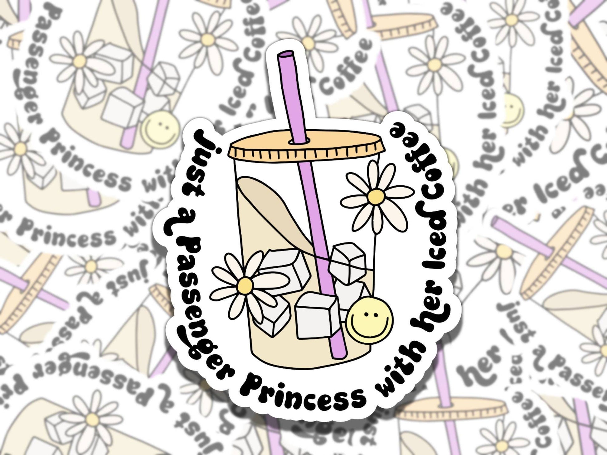 Just a Passenger Princess Coffee Girly Waterproof Vinyl Sticker, Gift for Girl Friend, Funny Sticker for Kindle Laptop Water Bottle Journal
