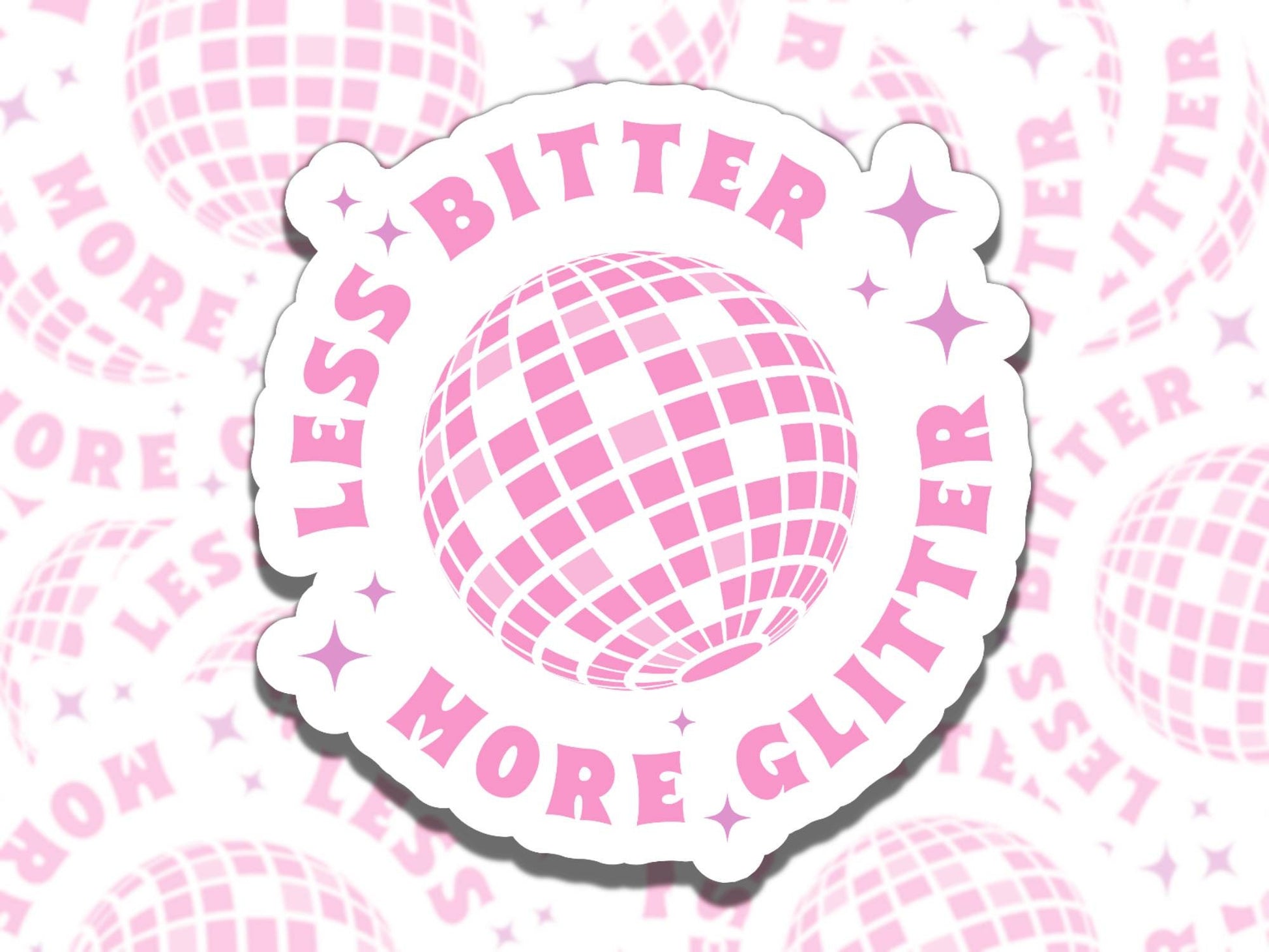 Less Bitter More Glitter Retro Pink Girly Waterproof Vinyl Sticker, Gift for Girl Friend, Funny Sticker for Kindle Laptop Water Bottle Journ