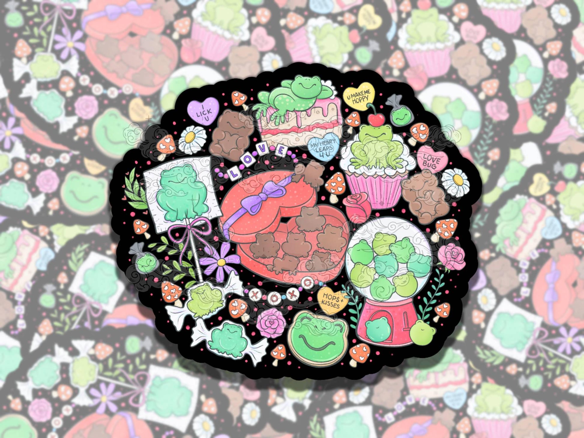 Love is Yummy Frog Pink Valentine's Waterproof Vinyl Sticker, Gift for Girl Friend, Funny Sticker for Kindle Laptop Water Bottle Journal