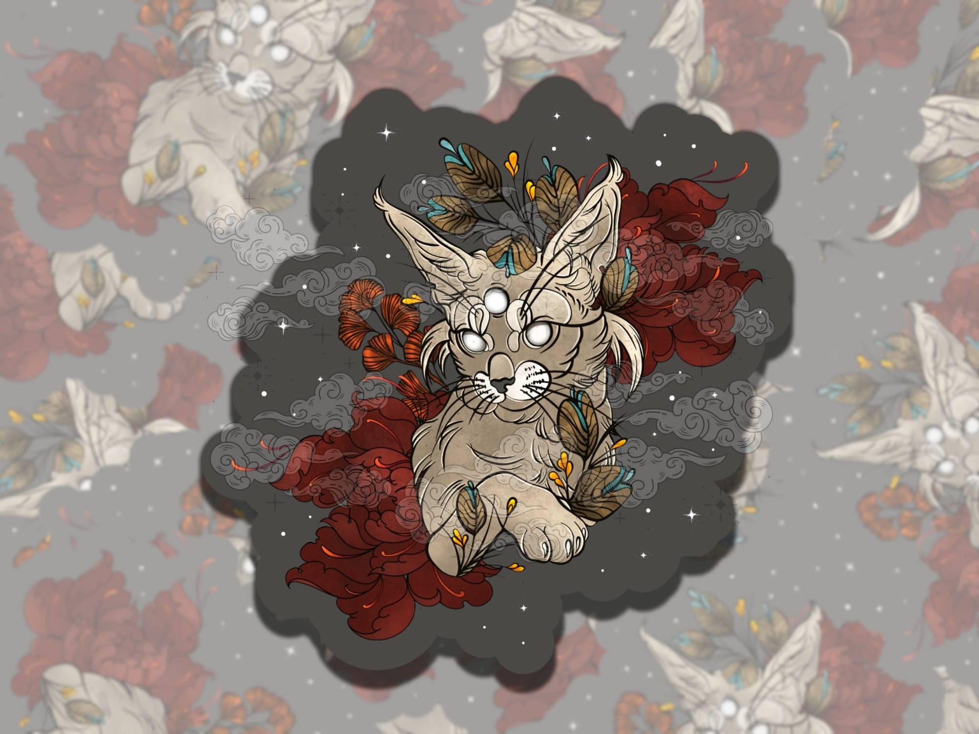 Magical Feline Whimsigoth Waterproof Vinyl Sticker, Girly Gift for Friend, Funny Sticker for Kindle Laptop Water Bottle Journal