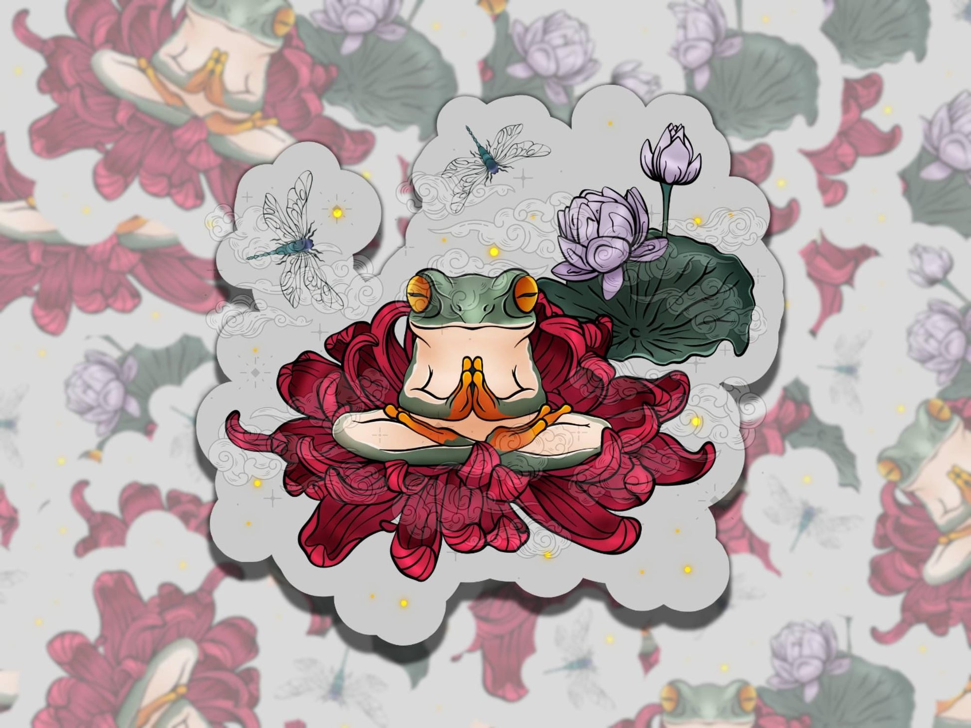 Meditating Frog Whimsigoth Waterproof Vinyl Sticker, Girly Gift for Friend, Funny Sticker for Kindle Laptop Water Bottle Journal