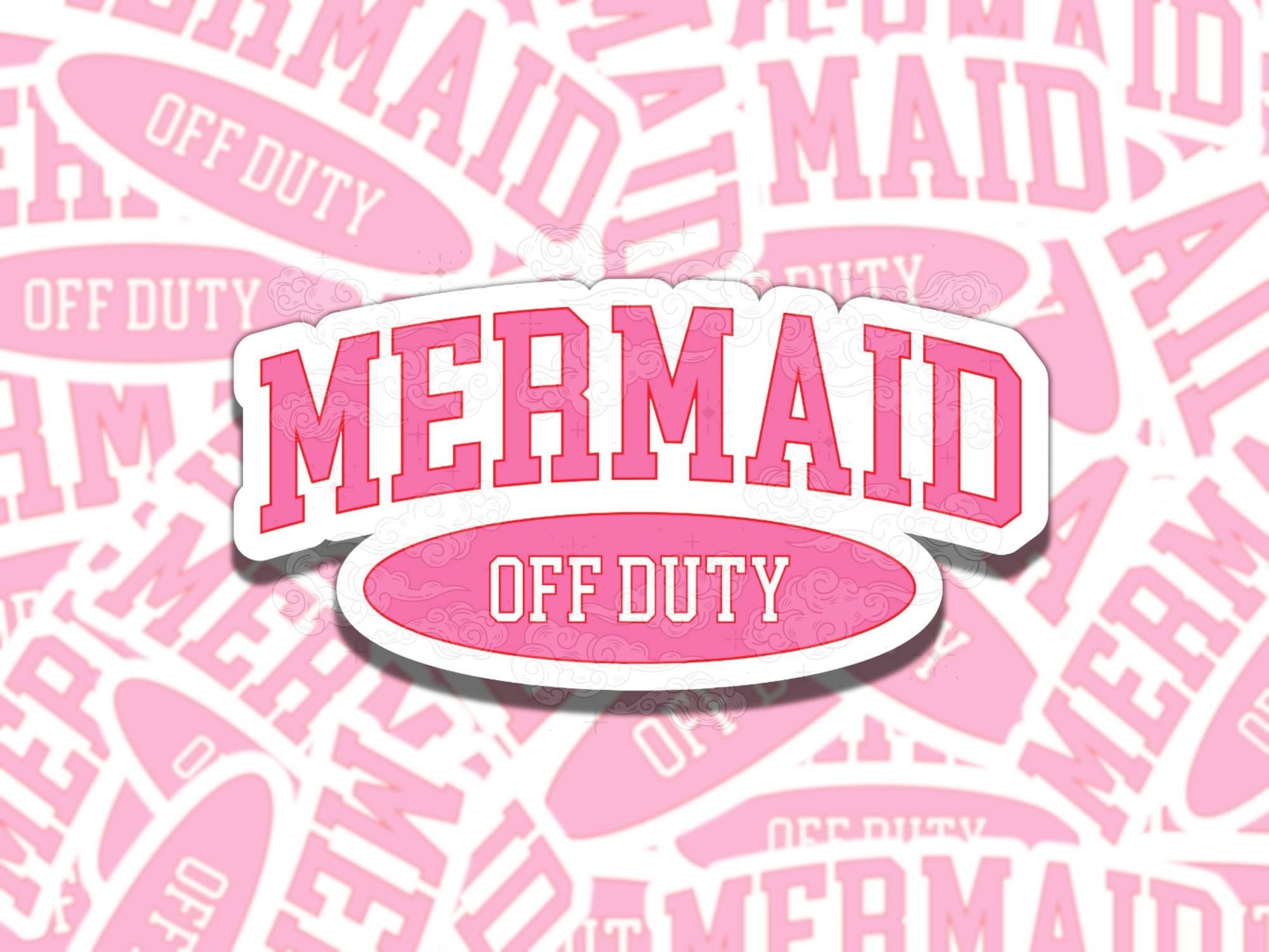Mermaid Off Duty Cute Girly Waterproof Vinyl Sticker, Girly Gift for Friend, Funny Sticker for Kindle Laptop Water Bottle Journal