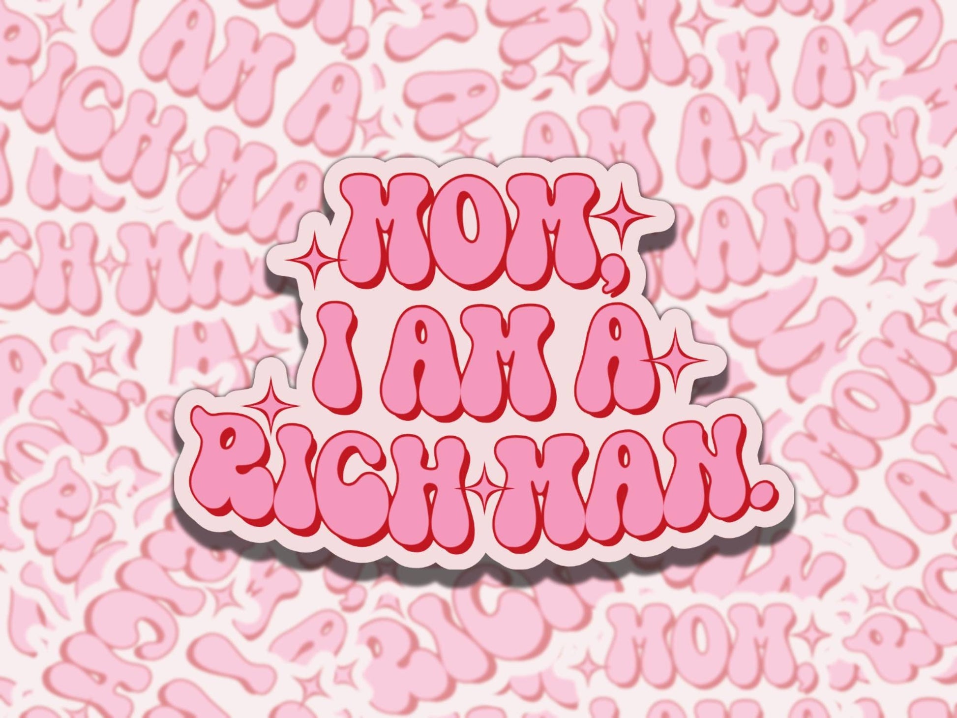Mom I Am a Rich Man Cher Quote Cute Pink Waterproof Vinyl Sticker, Gift for Girl Friend, Funny Sticker for Kindle Laptop Water Bottle Journa