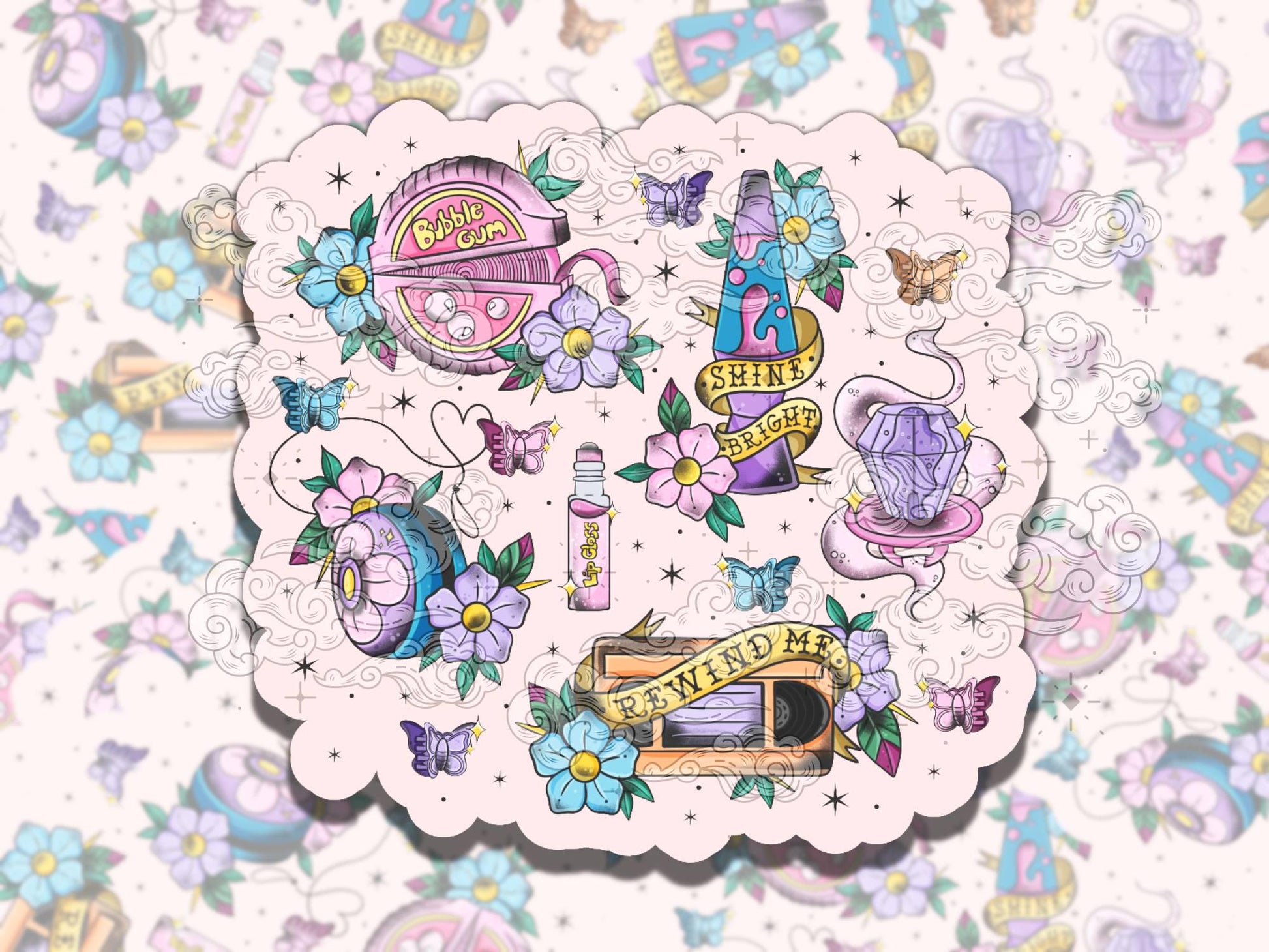 Nostalgic Flash Tattoo Cute Waterproof Vinyl Sticker, Gift for Girl Friend, Funny Sticker for Kindle Laptop Water Bottle Journal