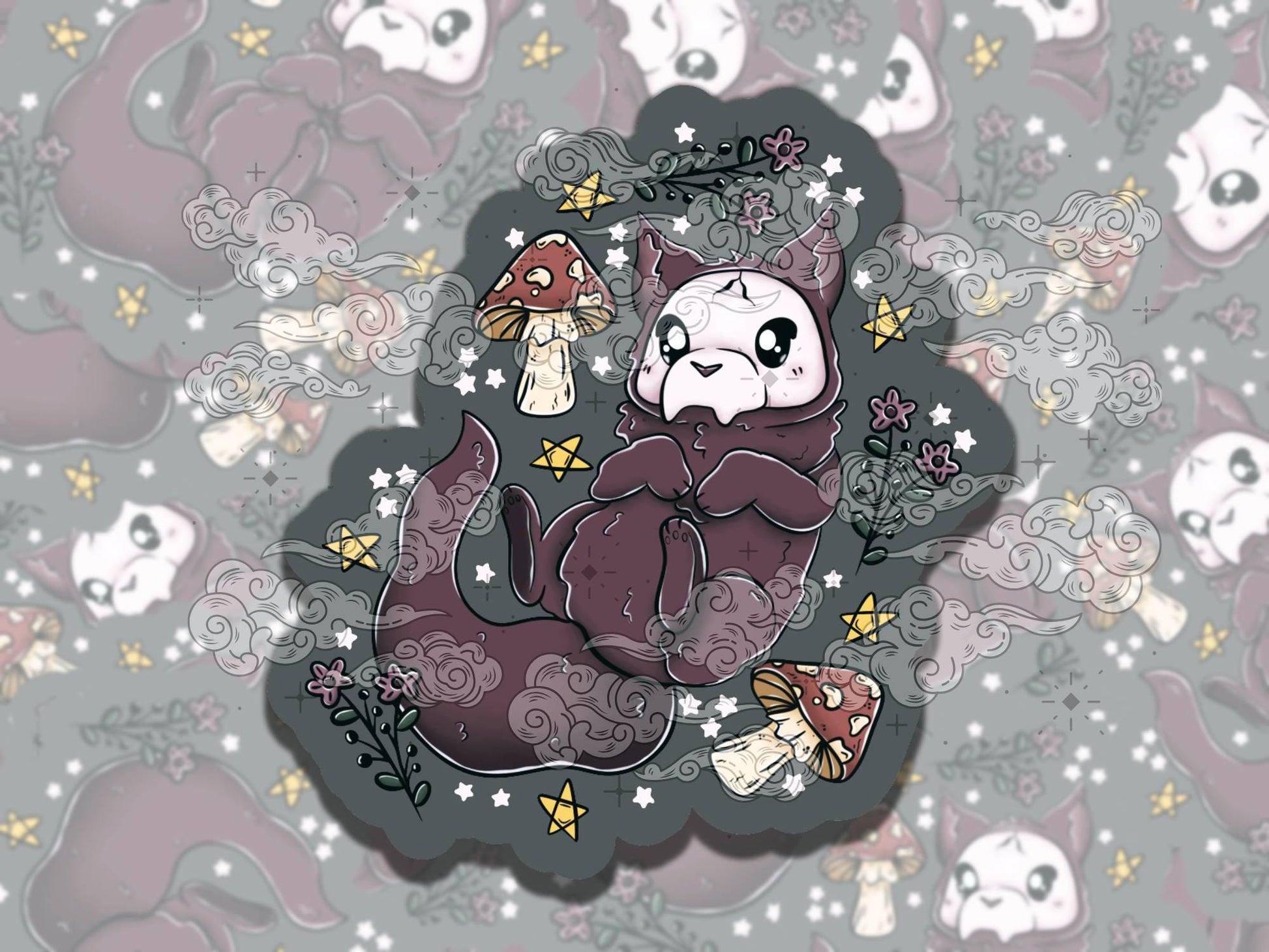 Occult Critter Cute Witchy Waterproof Vinyl Sticker, Gift for Girl Friend, Funny Sticker for Kindle Laptop Water Bottle Journal