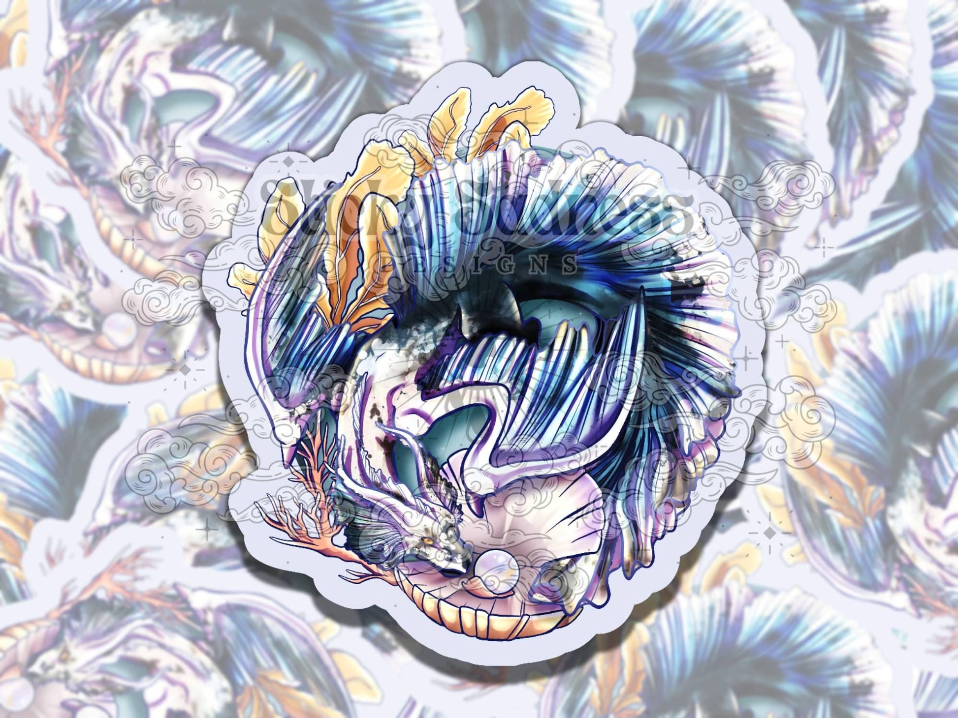 Oceanic Water Dragon Waterproof Vinyl Sticker, Gift for Friend, Funny Sticker for Kindle Laptop Water Bottle Journal, Fantasy Art