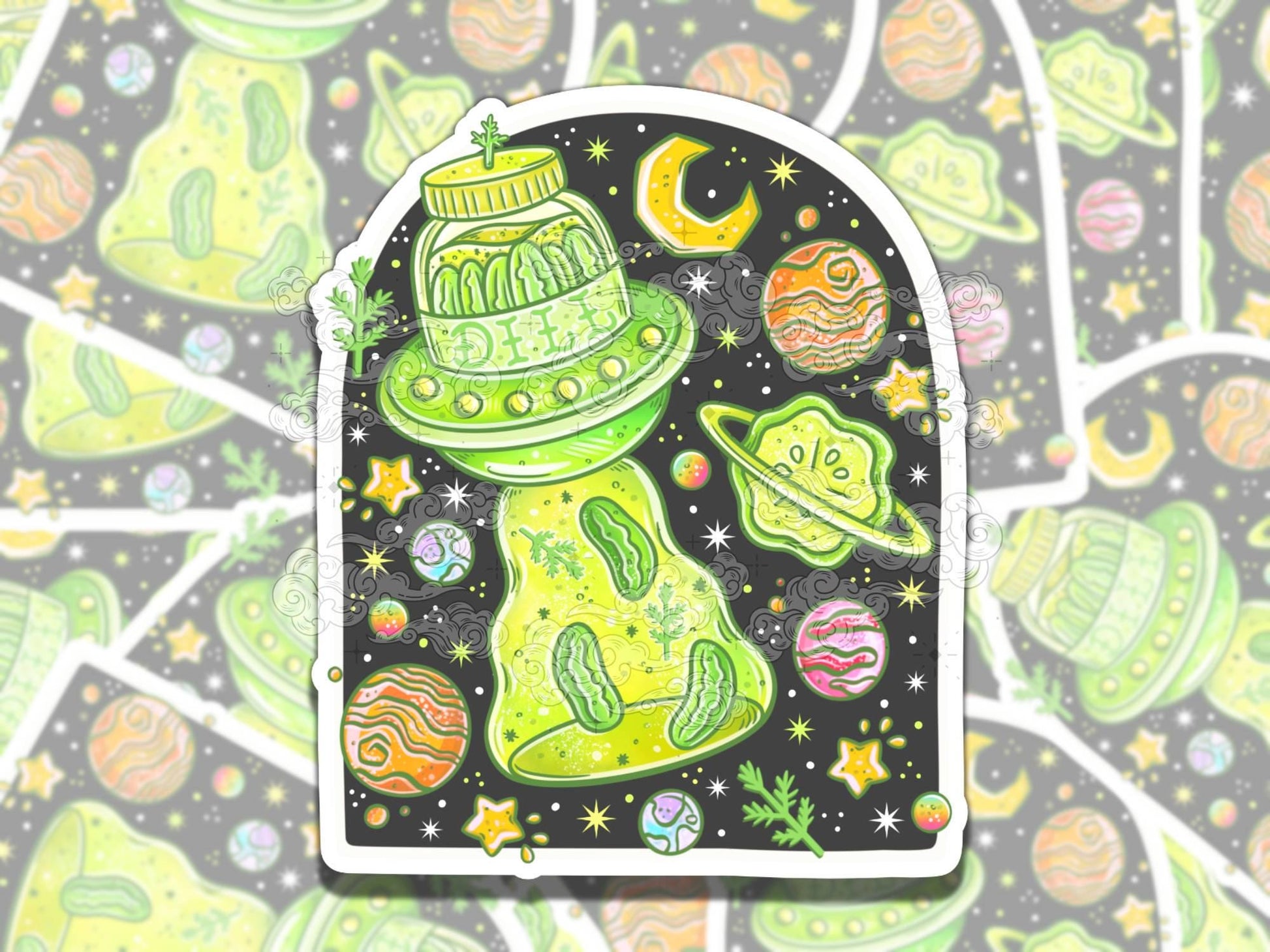 Pickle UFO Cute Girly Waterproof Vinyl Sticker, Girly Gift for Friend, Funny Sticker for Kindle Laptop Water Bottle Journal