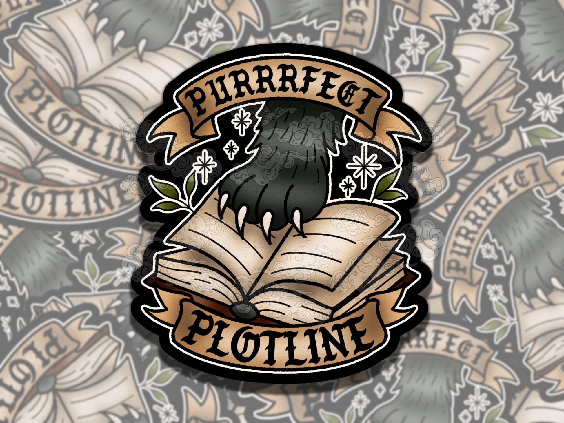 Purrrfect Plotline Bookish Cats Pets Waterproof Vinyl Sticker, Girly Gift for Friend, Funny Sticker for Kindle Laptop Water Bottle Journal