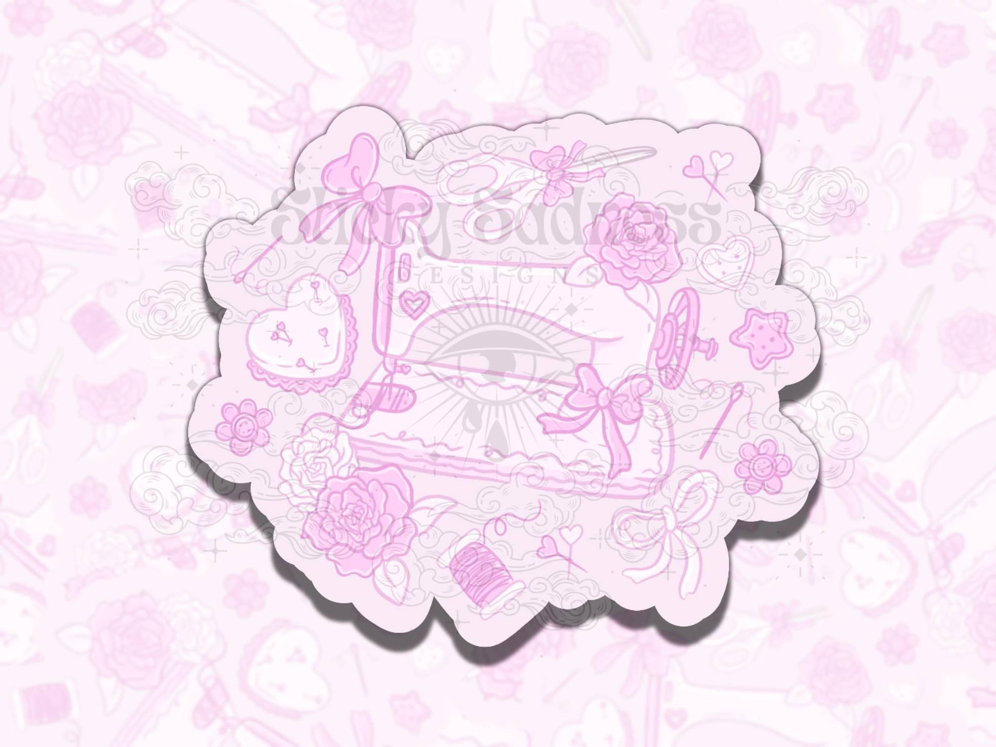 Sew Girly Pink Fun Cute Girly Waterproof Vinyl Sticker, Gift for Girl Friend, Funny Sticker for Kindle Laptop Water Bottle Journal