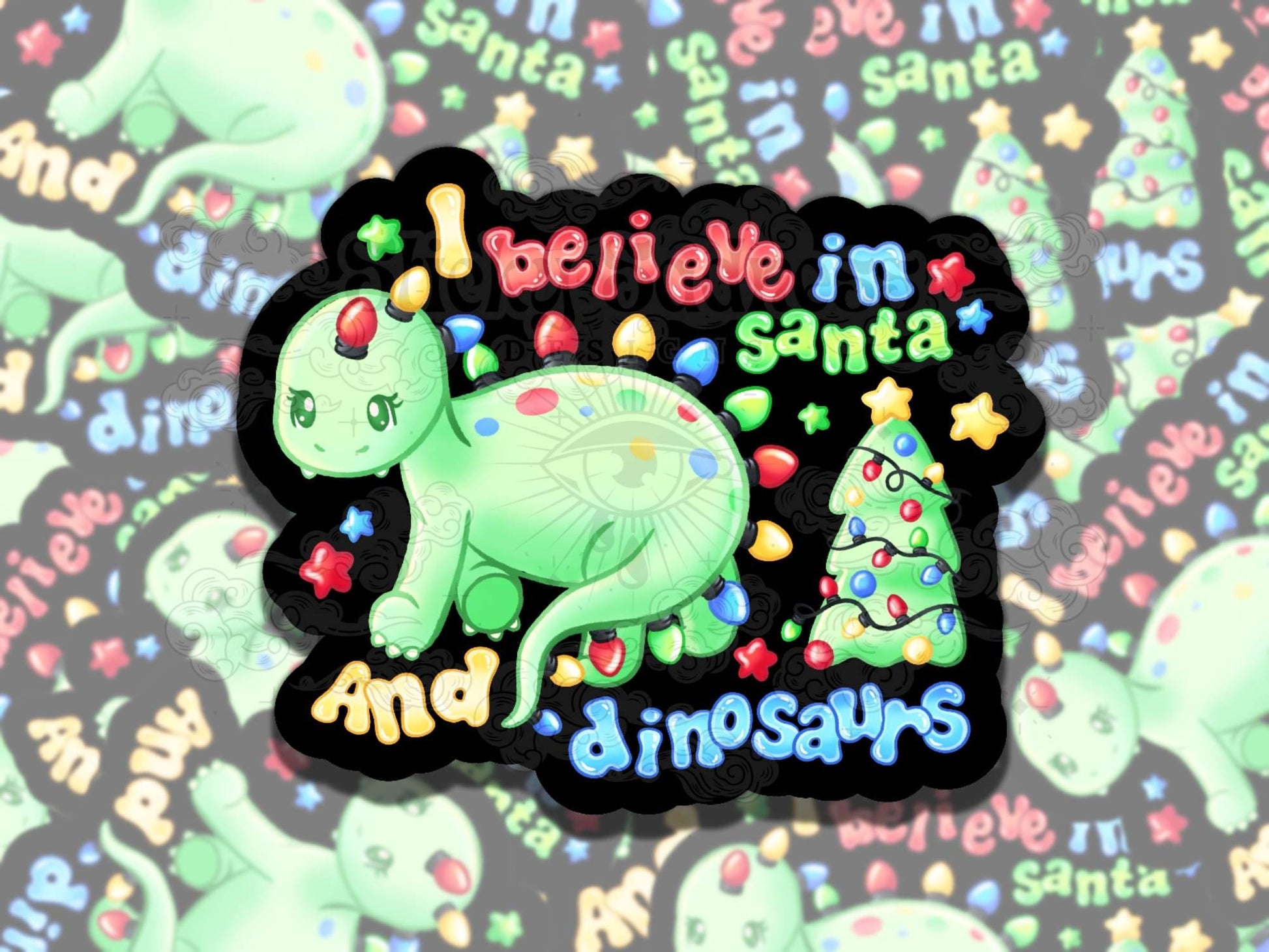 Shineosaurus Cute Christmas Dino Nostalgic Waterproof Vinyl Sticker, Gift for Friend, Funny Sticker for Kindle Laptop Water Bottle Journal