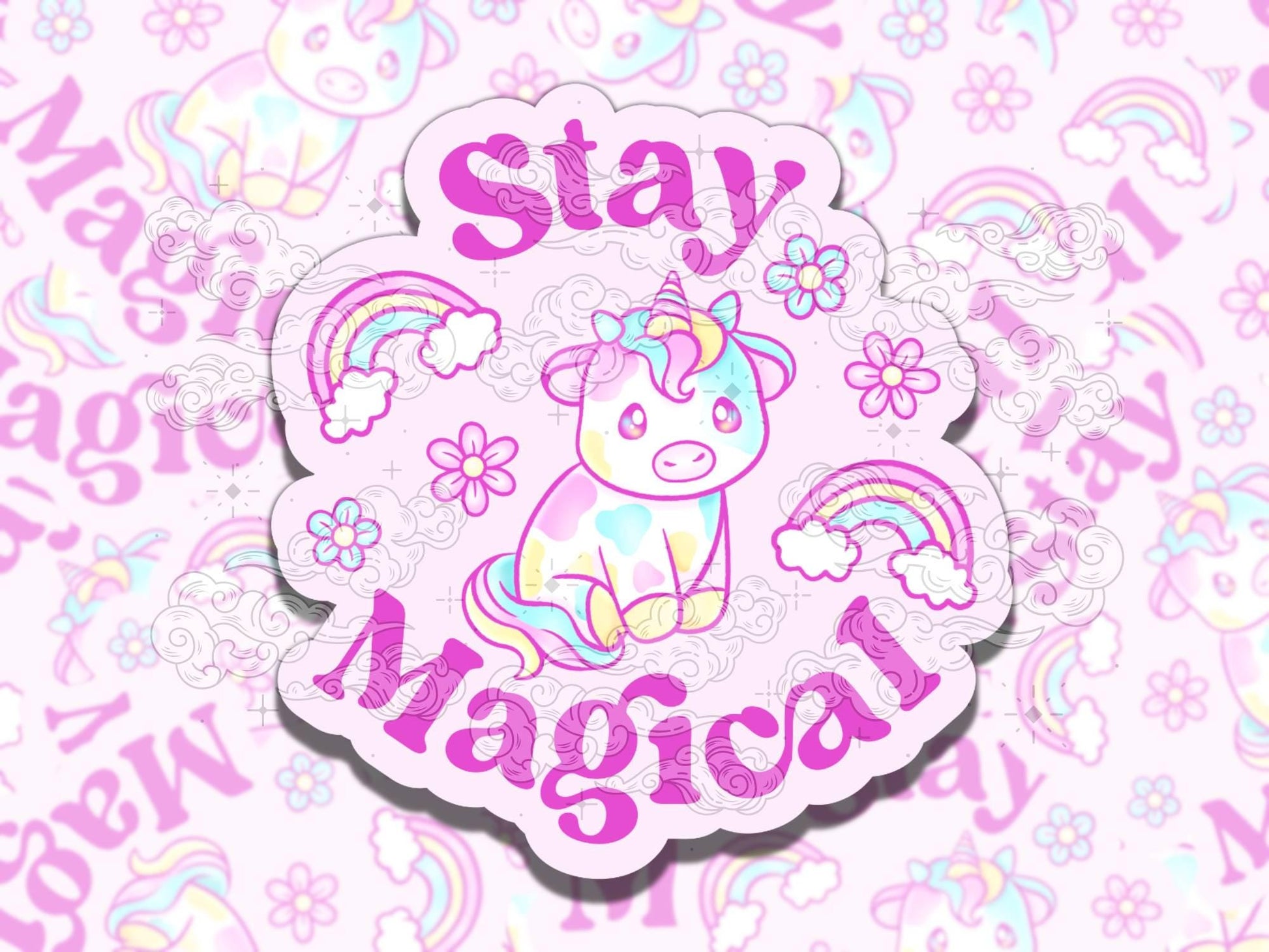 Stay Magical Unicorn Cow Cute Waterproof Vinyl Sticker, Girly Gift for Coffee Lover, Funny Sticker for Kindle Laptop Water Bottle Journal