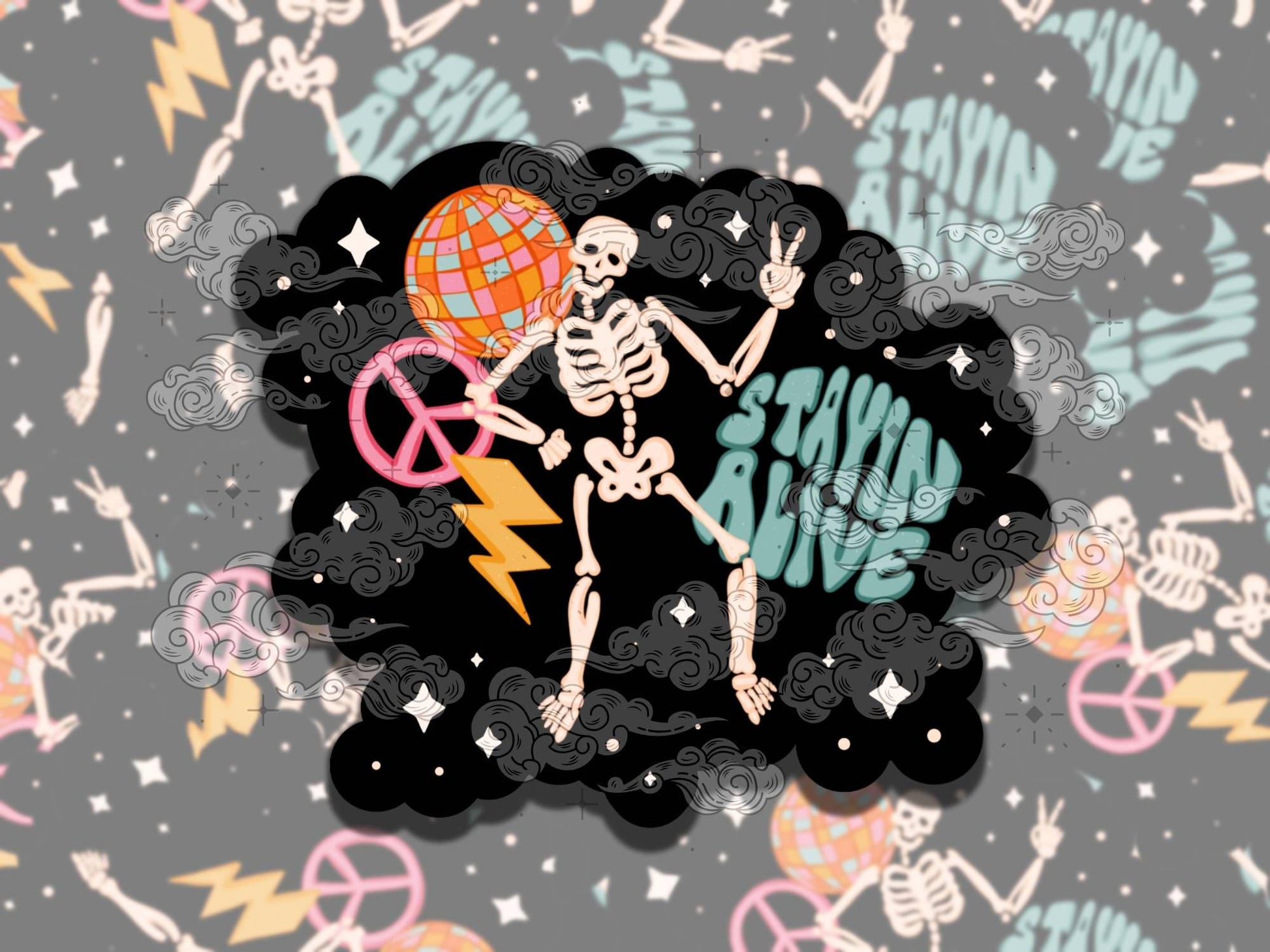 Stayin' Alive Cute Witchy Waterproof Vinyl Sticker, Gift for Girl Friend, Funny Sticker for Kindle Laptop Water Bottle Journal