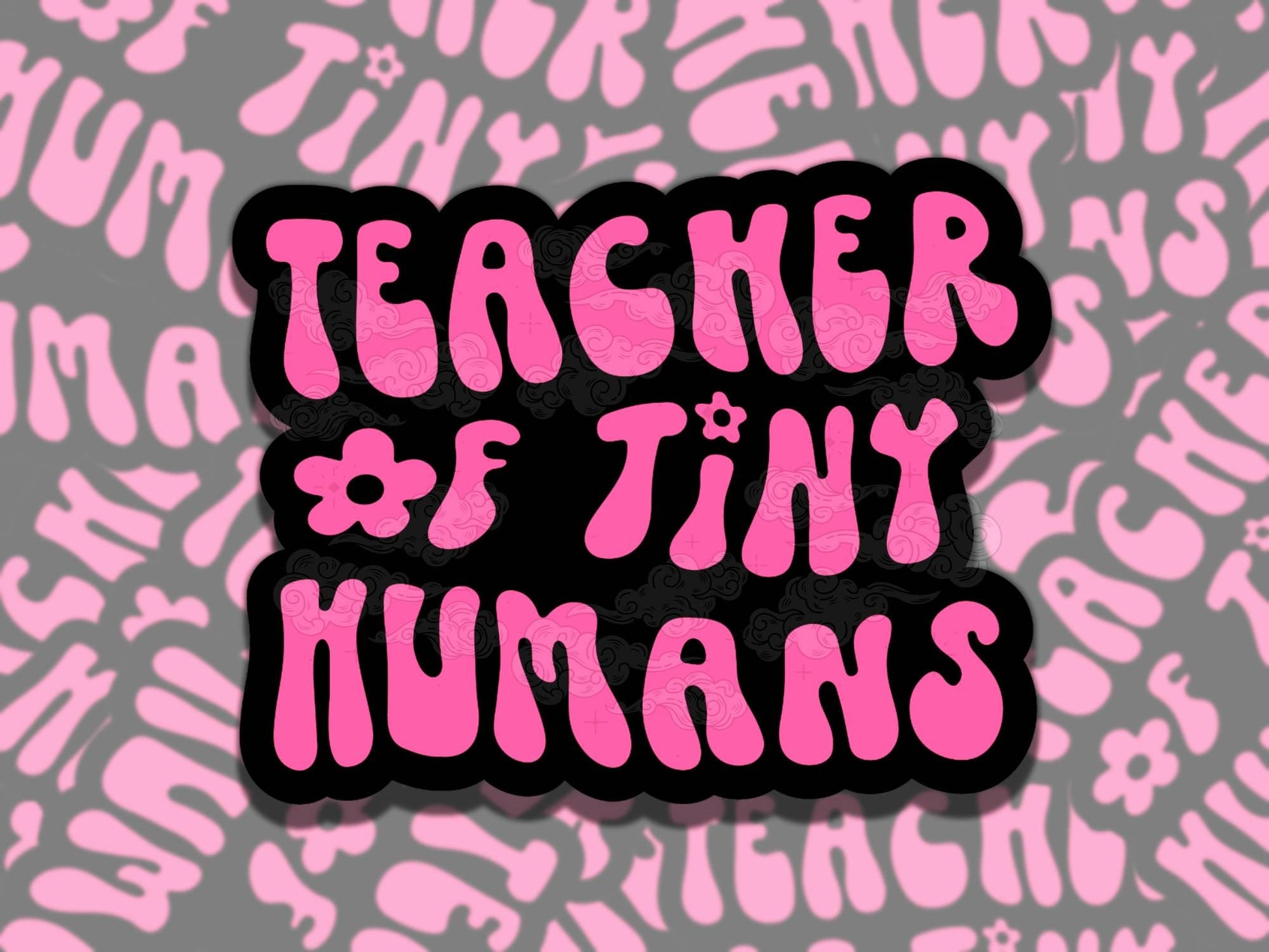 Teacher of Tiny Humans Cute Waterproof Vinyl Sticker, Girly Gift for Friend, Funny Sticker for Kindle Laptop Water Bottle Journal