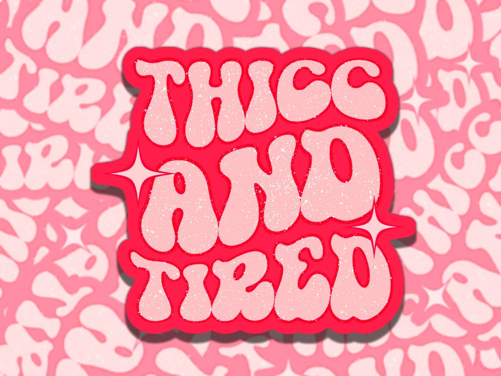 Thicc and Tired Cute Pink and Red Waterproof Vinyl Sticker, Gift for Friend, Funny Sticker for Kindle Laptop Water Bottle Journal