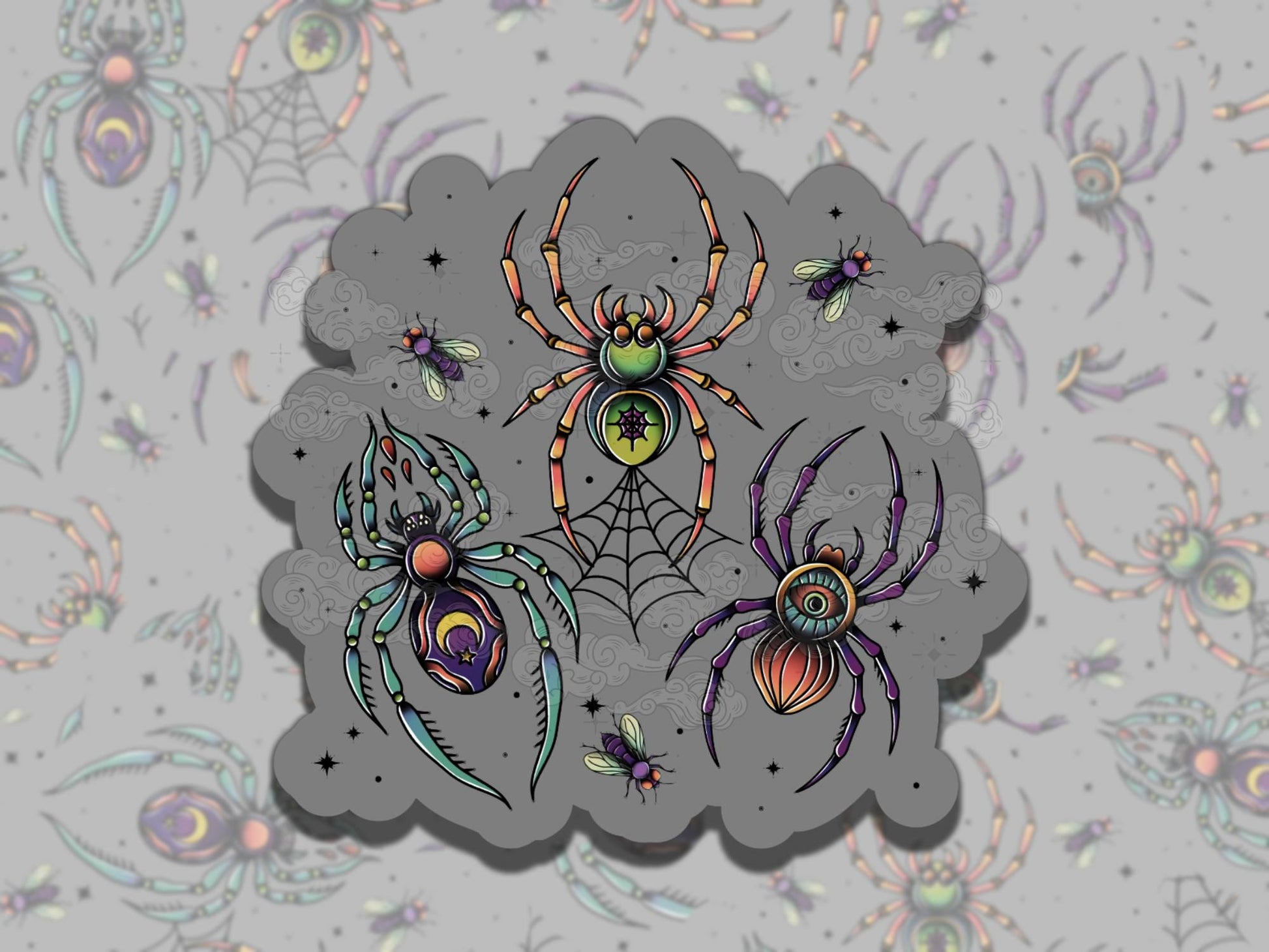 Traditional Spiders Waterproof Vinyl Sticker, Gift for Friend, Funny Sticker for Kindle Laptop Water Bottle Journal, Fantasy Art