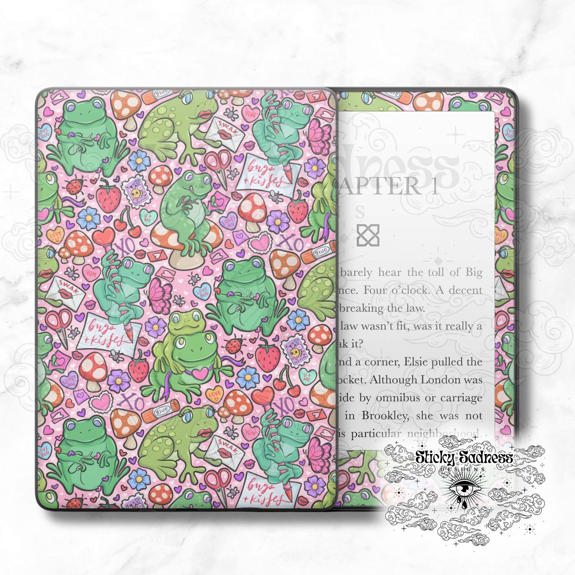 Valentine's Frog Holiday Insert Skin, Cute Vinyl Wrap for Kindle Kobo iPad Boox Fire, Gift for Valentine Book Lover, BookTok Accessories