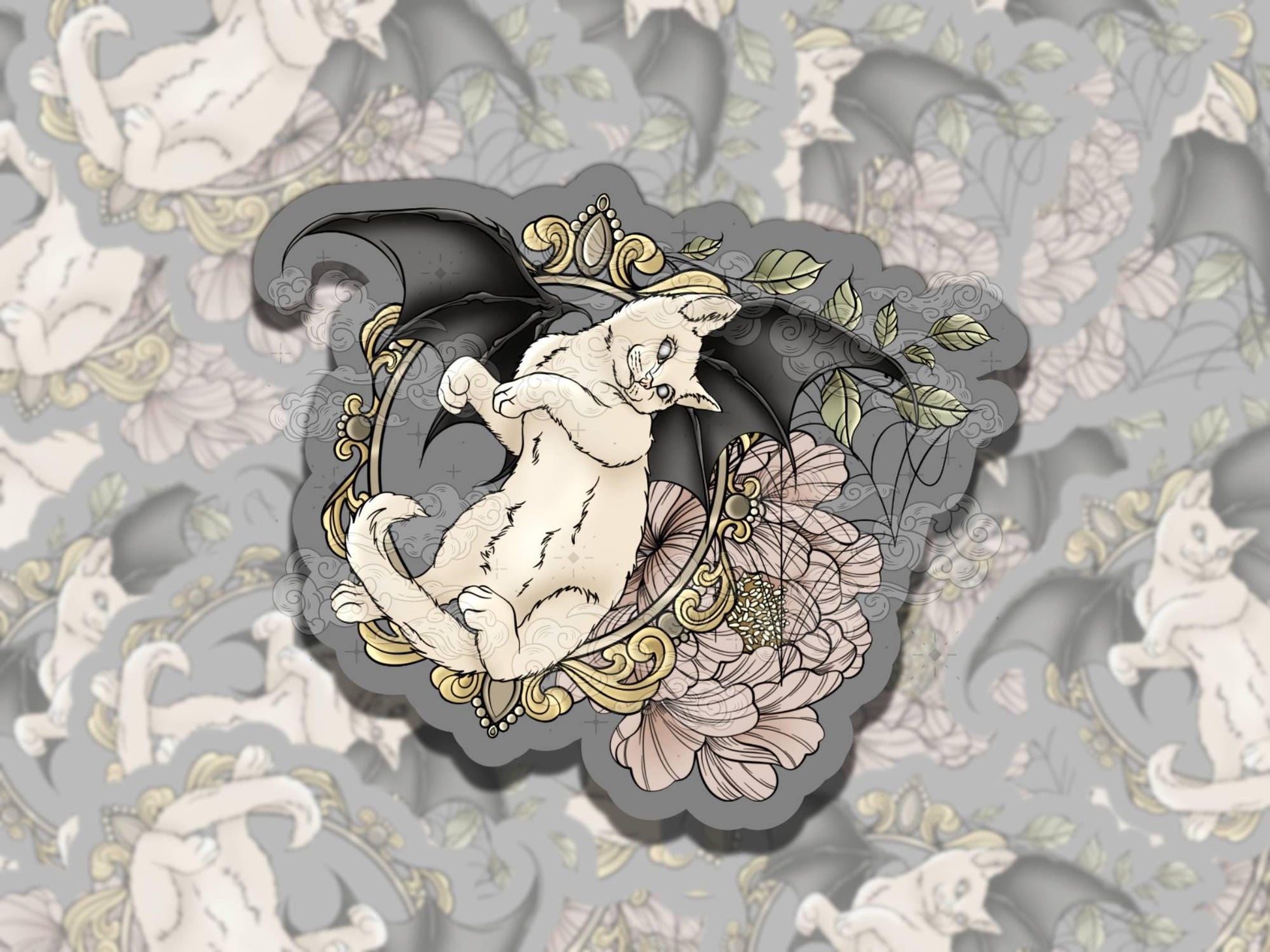 Vampire Kitties Whimsigoth Waterproof Vinyl Sticker, Girly Gift for Friend, Funny Sticker for Kindle Laptop Water Bottle Journal