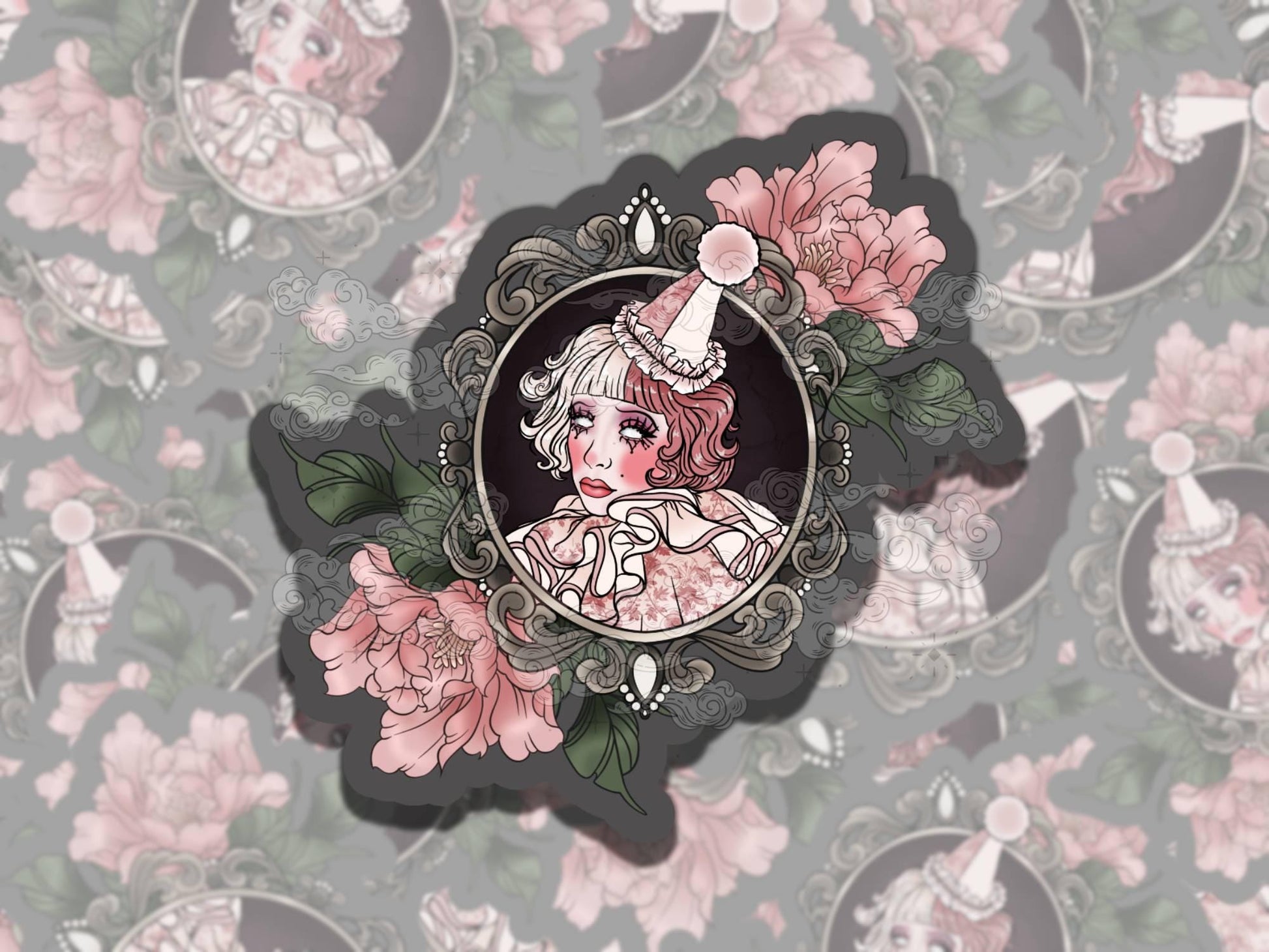 Whimsy Clown Whimsigoth Magic Waterproof Vinyl Sticker, Girly Gift for Friend, Funny Sticker for Kindle Laptop Water Bottle Journal